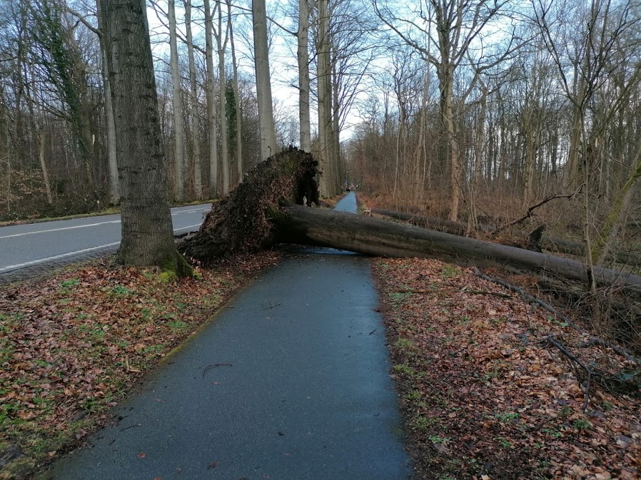 Natuurlijk is het niet mogelijk om elk pad naar of in het woud af te sluiten. Bovendien wordt afsluitingslint regelmatig verwijderd door onvoorzichtige bezoekers. Het is dus van groot belang dat bezoekers zich steeds verantwoord gedragen, zich informeren over de weersomstandigheden* voordat ze het woud bezoeken en hun bezoek afblazen wanneer de voorspellingen ongunstig zijn.